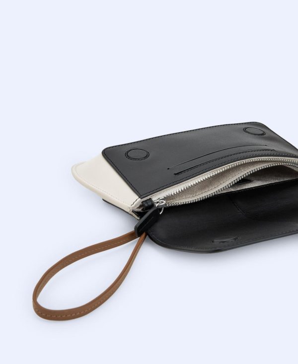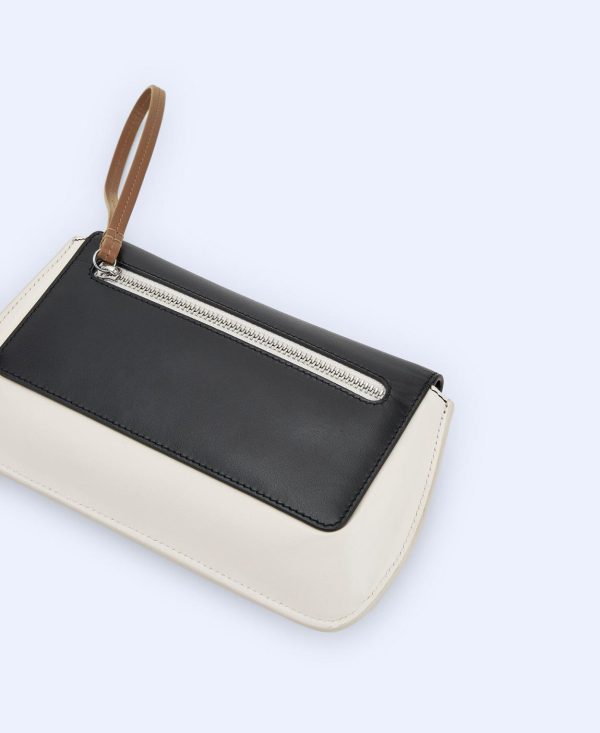 Cierre de solapa. Tarjetero bajo la solapa. Bolsillo de cremallera posterior con tirador de asa muñequera.