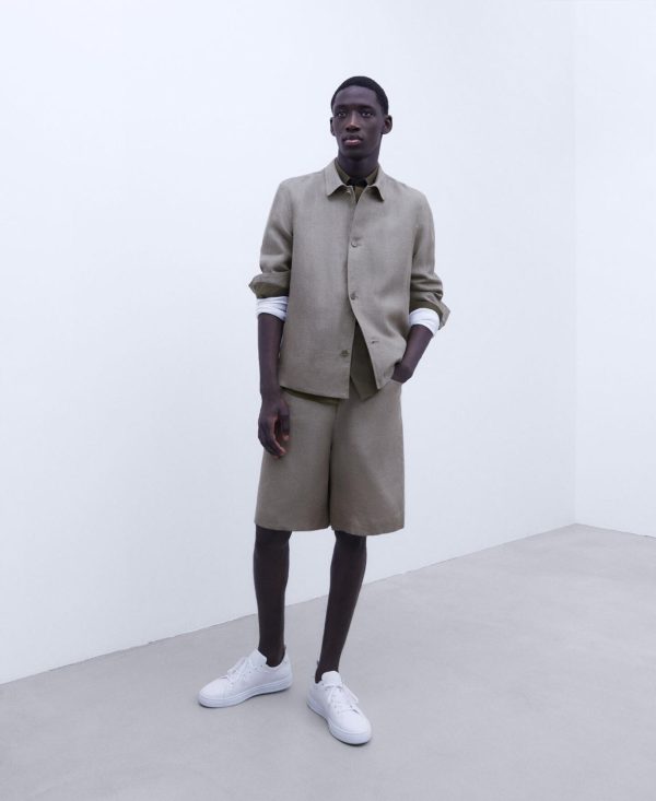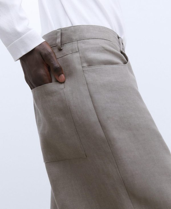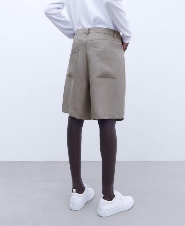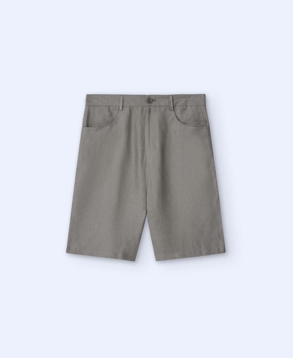 Adolfo Domínguez Pantalones | Bermuda En Lino Gris/Verde Hombre