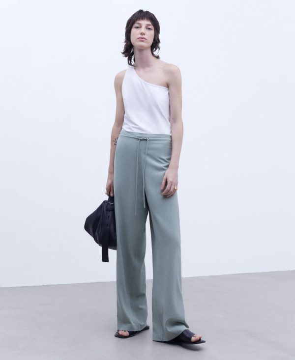 Adolfo Domínguez Pantalones | Jogger Fluido De Corte Recto Verde Mujer