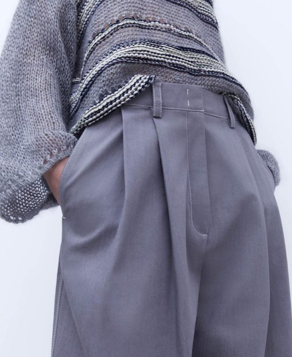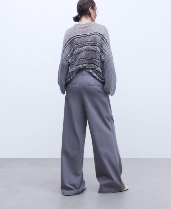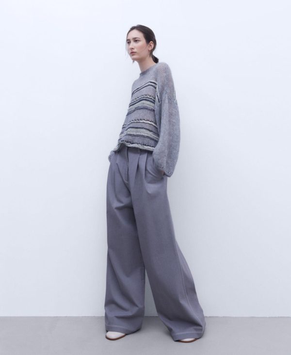 Adolfo Domínguez Pantalones | Pantalón Ancho En Tejido De Algodón Gris Mujer