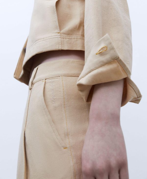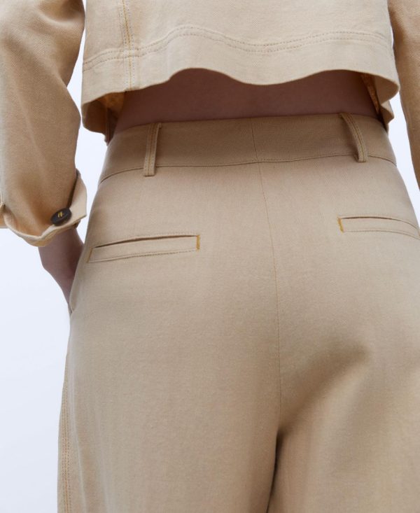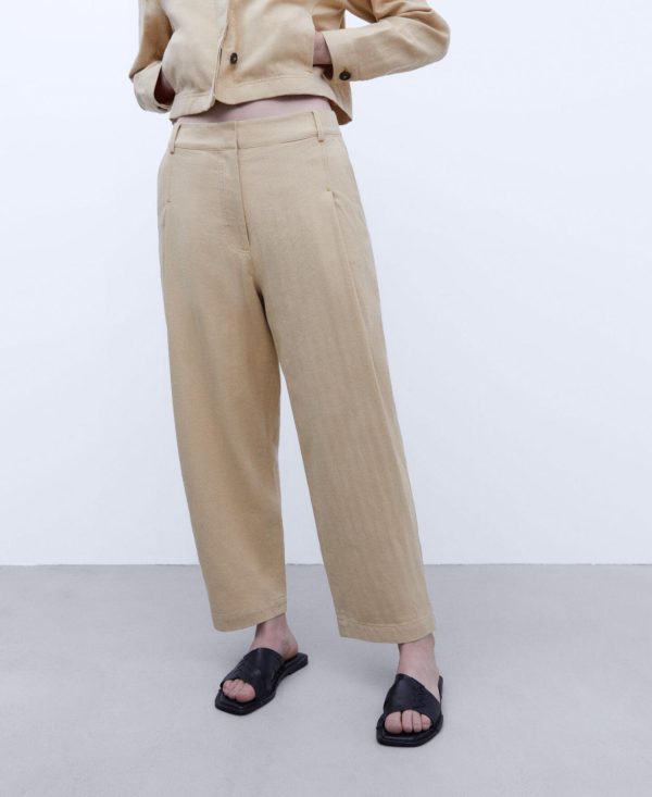 Pantalón corte banana. Cintura alta. Bolsillo delantero. Largo tobillo.