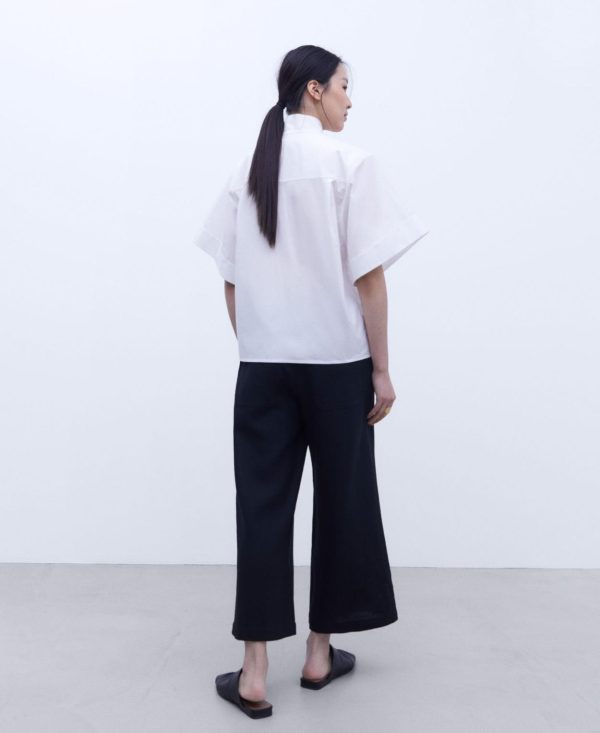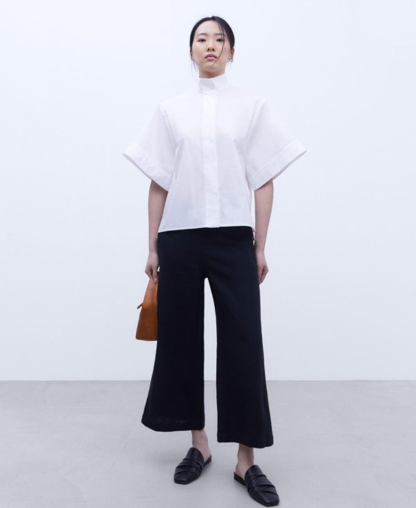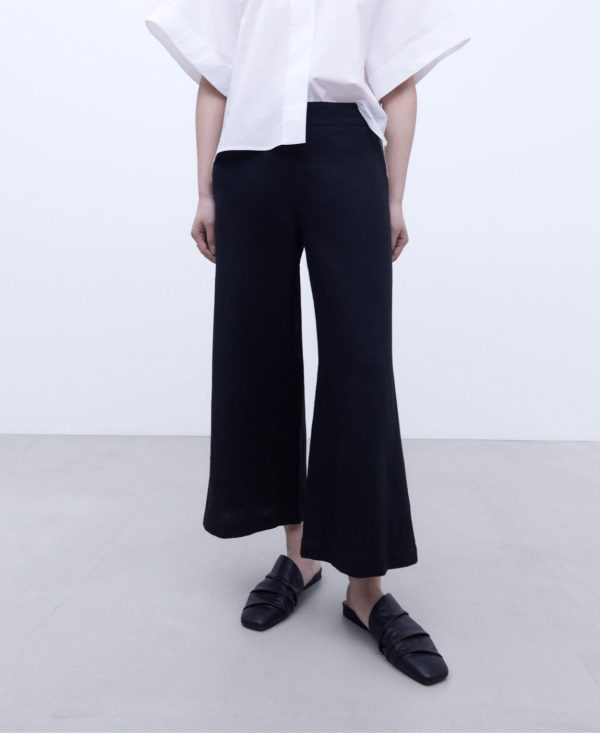 Adolfo Domínguez Pantalones | Pantalón Bordado Inglés En Lino Algodón Blanco Y Negro Mujer