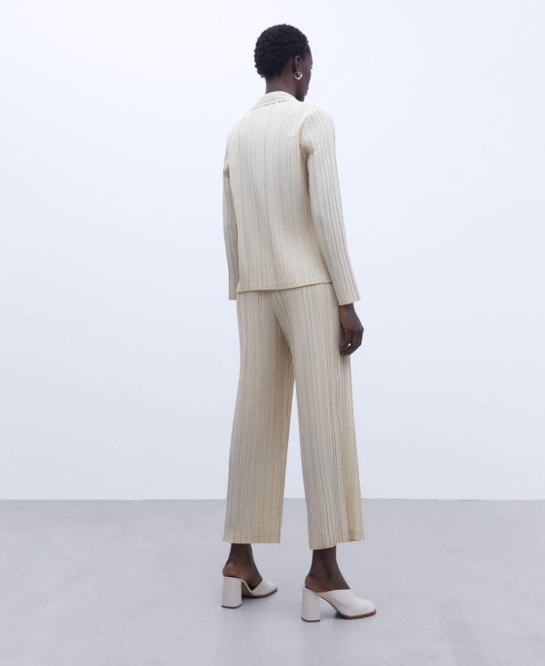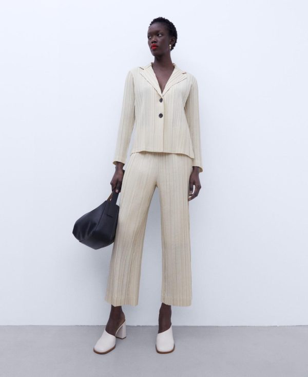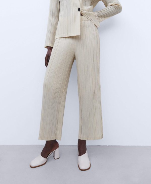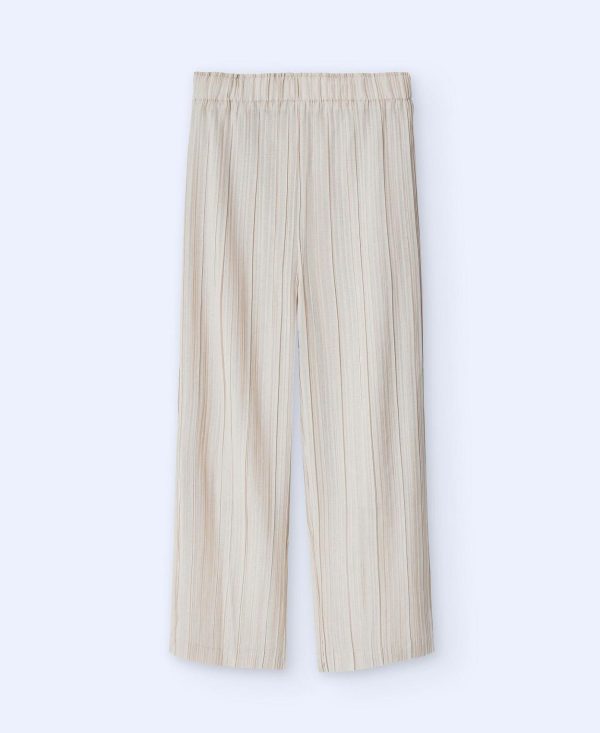 Pantalón en crinkle. Cinturilla elástica. Largo tobillo. Bajo recto.