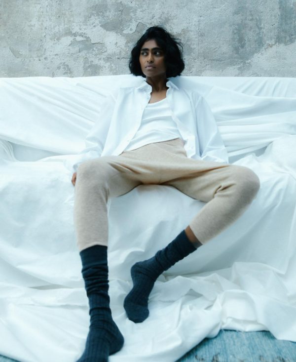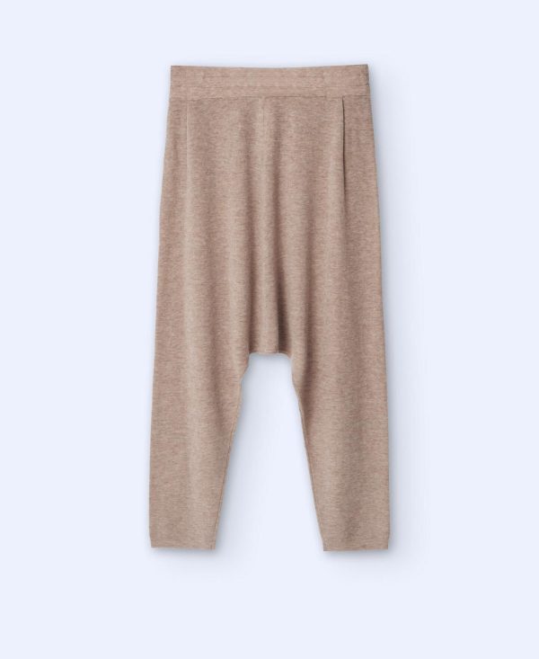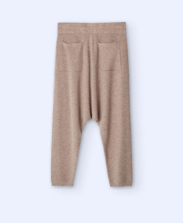 Pantalón en lana merino. Tiro caído. Cinturilla elástica. Pinza frontal. Bolsillo plastrón posterior. Bajo recto.