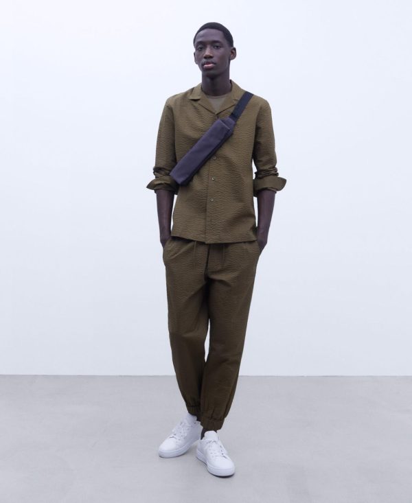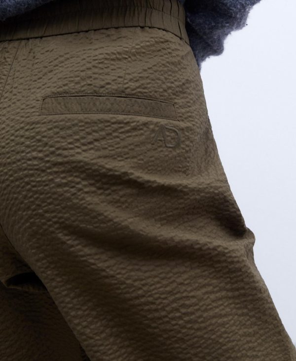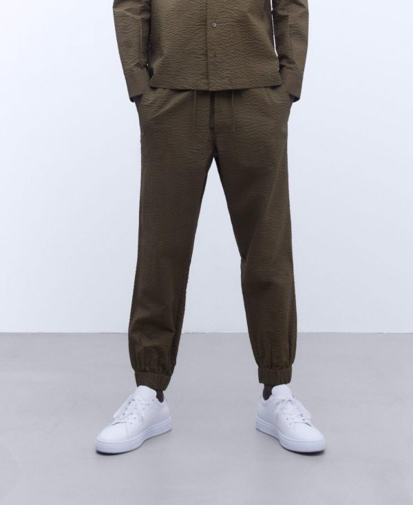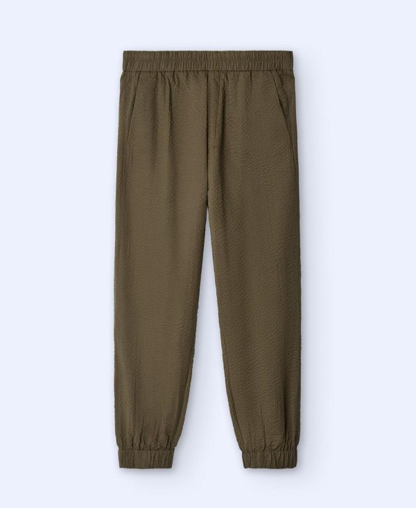 Cinturilla y bajos elásticos. Bolsillos laterales oblicuos.