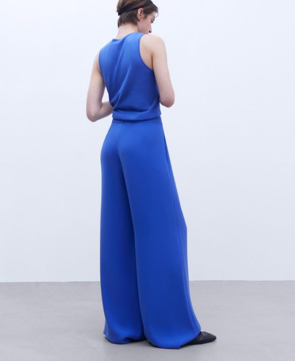 Pantalón largo monocolor. Corte recto. Cinturilla. Bolsillo lateral. Cierre posterior con cremallera invisble.