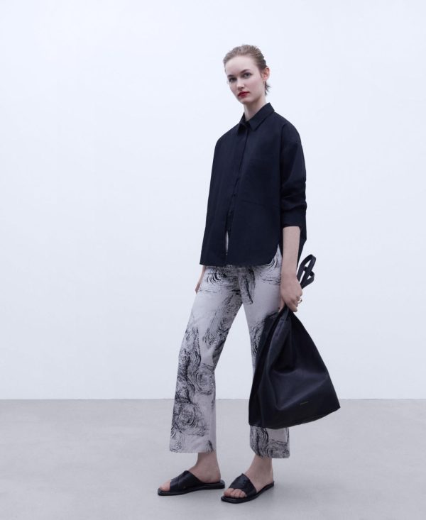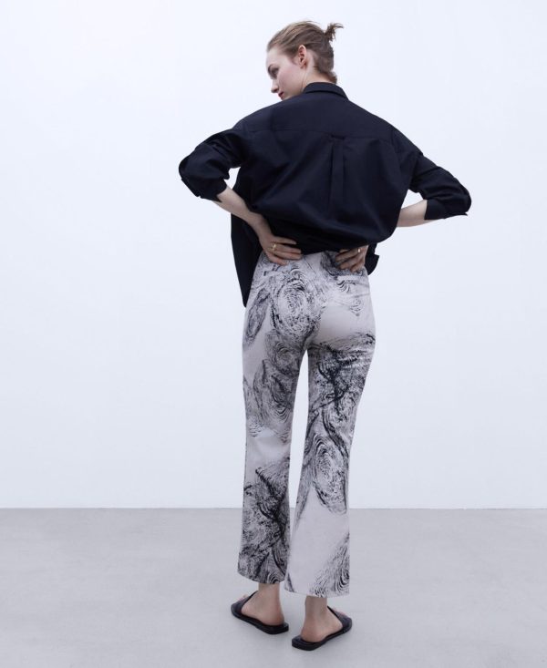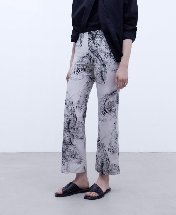 Adolfo Domínguez Pantalones | Pantalón Bordado Inglés En Lino Algodón Blanco Y Negro Mujer