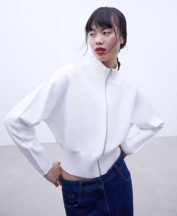 Adolfo Domínguez Punto | Bomber Con Cuello Alto Blanco Mujer