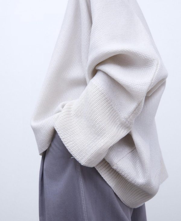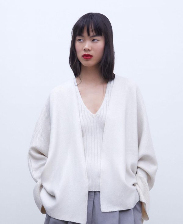 Chaqueta de punto. Manga larga japonesa. Remates de punto. Largo cadera. Bajo recto.