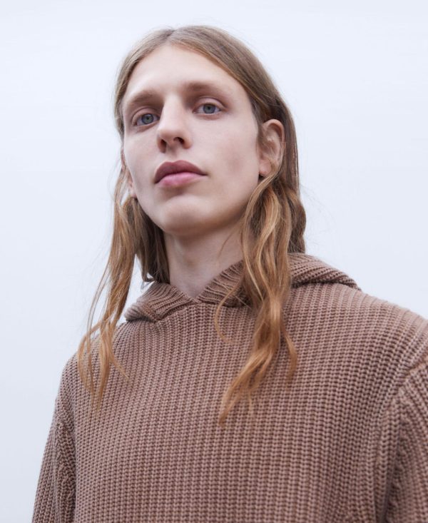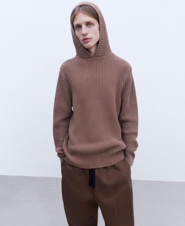 Jersey con capucha en punto de algodón. Manga larga. Remates en canalé.