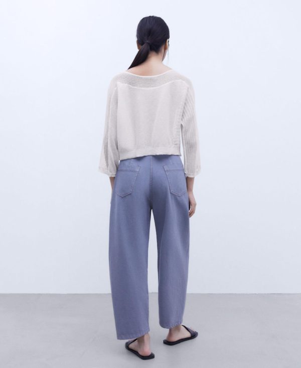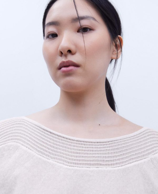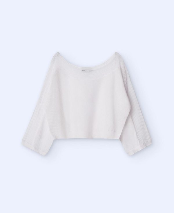 Escote redondo. Calados. Manga al codo. Bajo recto.