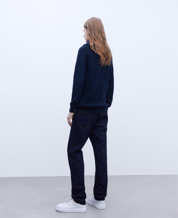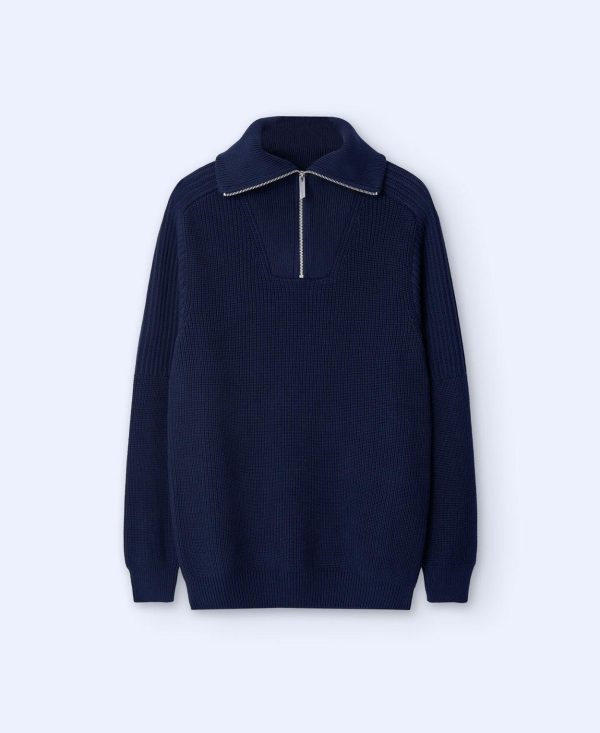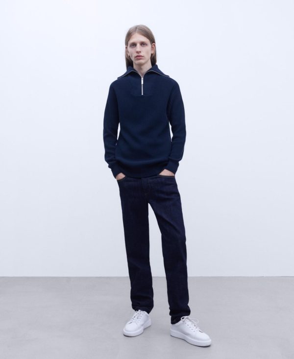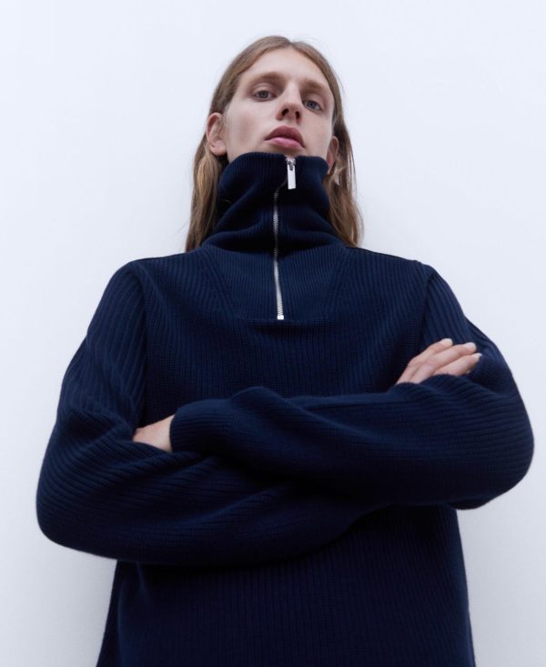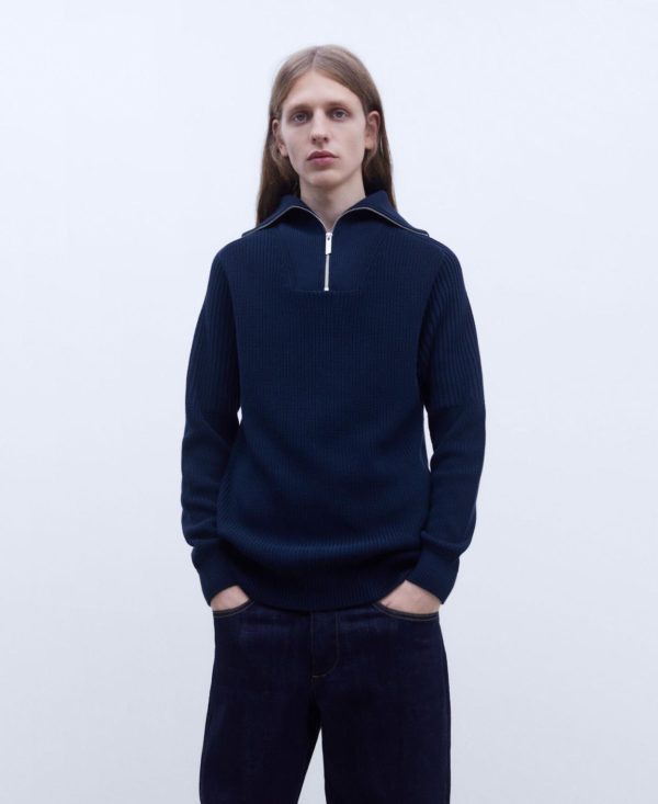 Jersey cuello alto cremallera en algodón. Manga ranglán. Remates en canalé.
