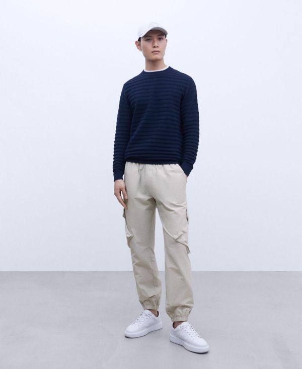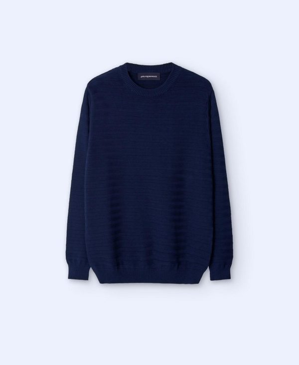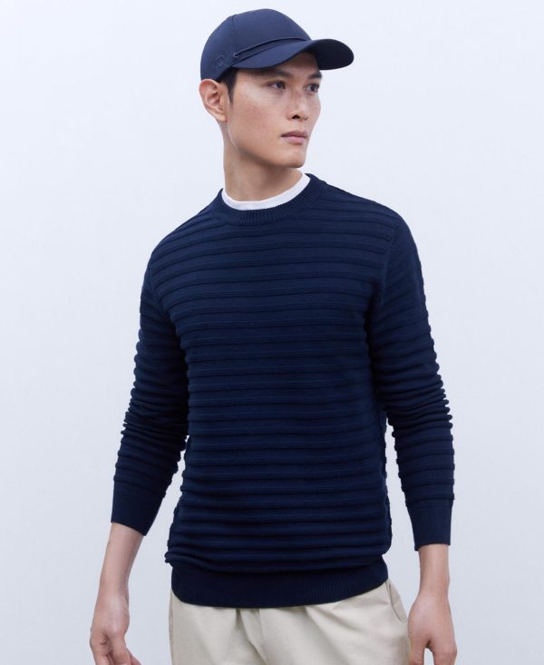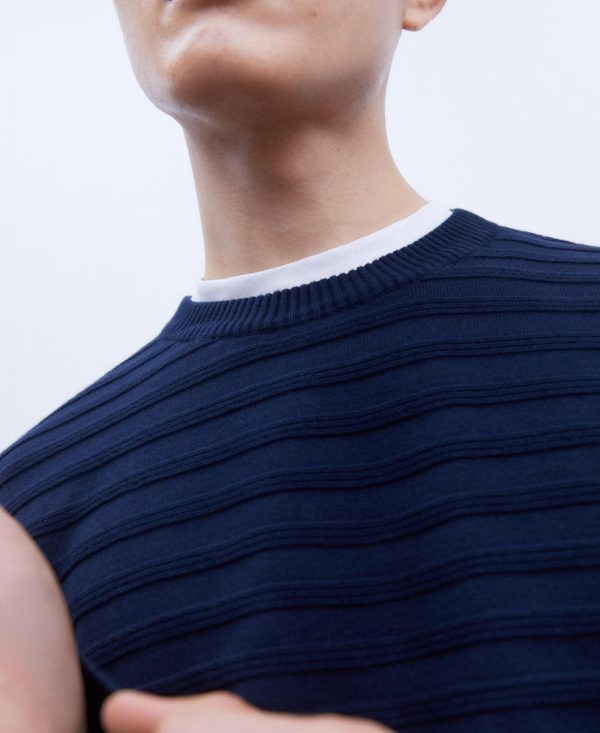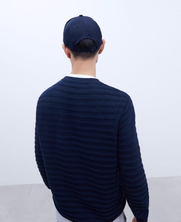 Jersey cuello caja estructura de rayas en algodón. Manga ranglán. Remates en canalé.
