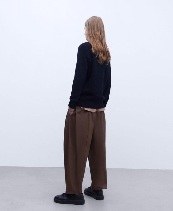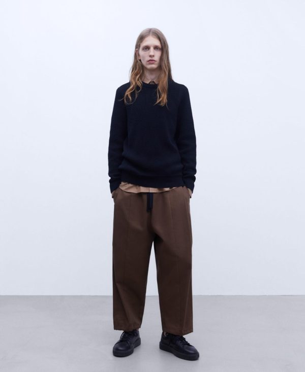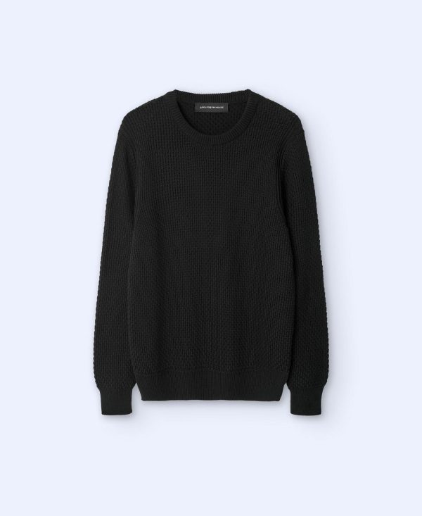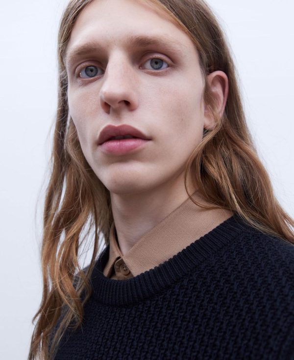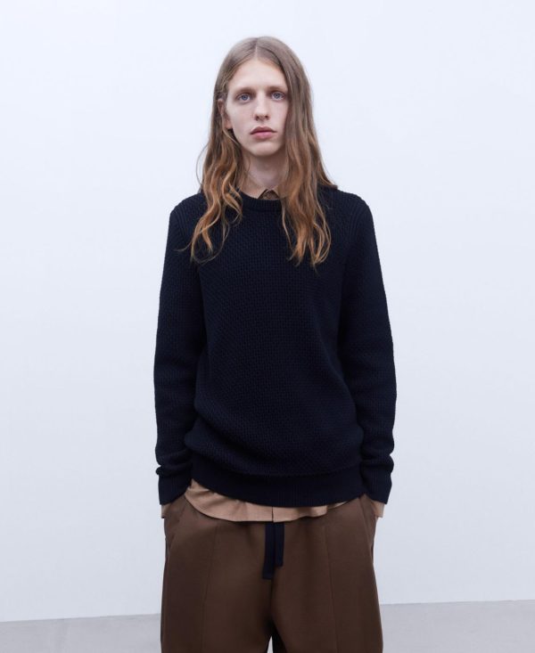 Jersey cuello caja estructura en algodón. Costuras desplazadas. Detalles menguados. Remates en canalé.