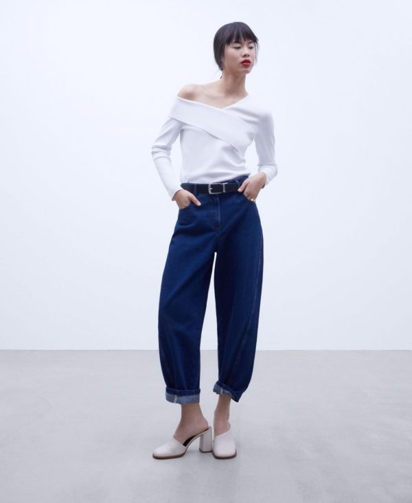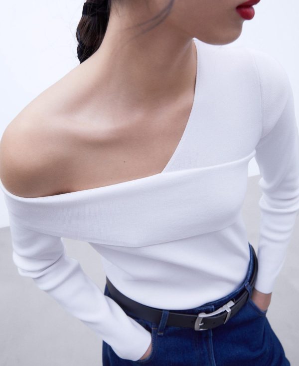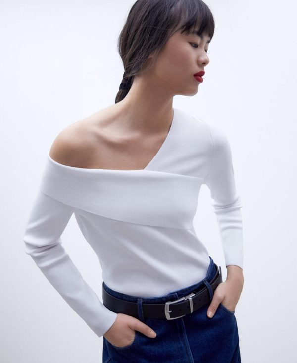 Adolfo Domínguez Punto | Top Asimétrico En Punto Blanco Mujer