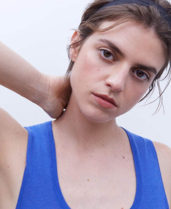 Top en lyocell, algodón y seda Mulberry. Sin mangas. Remates en punto tubular. Logotipado. Bajo recto.