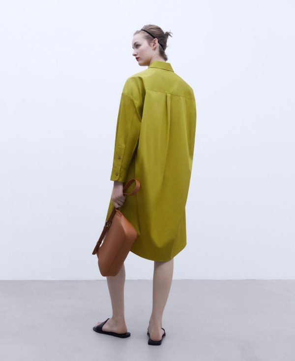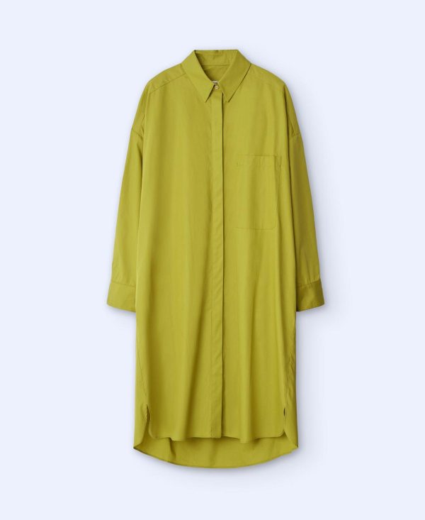Botonadura central con tapeta. Cuello solapa. Manga larga. Largo rodilla. Pliegues laterales.