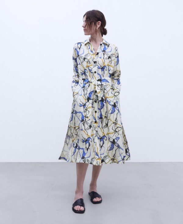 Adolfo Domínguez Vestidos Y Monos | Vestido Estampado En Crinkle Amarillo Estampado Mujer