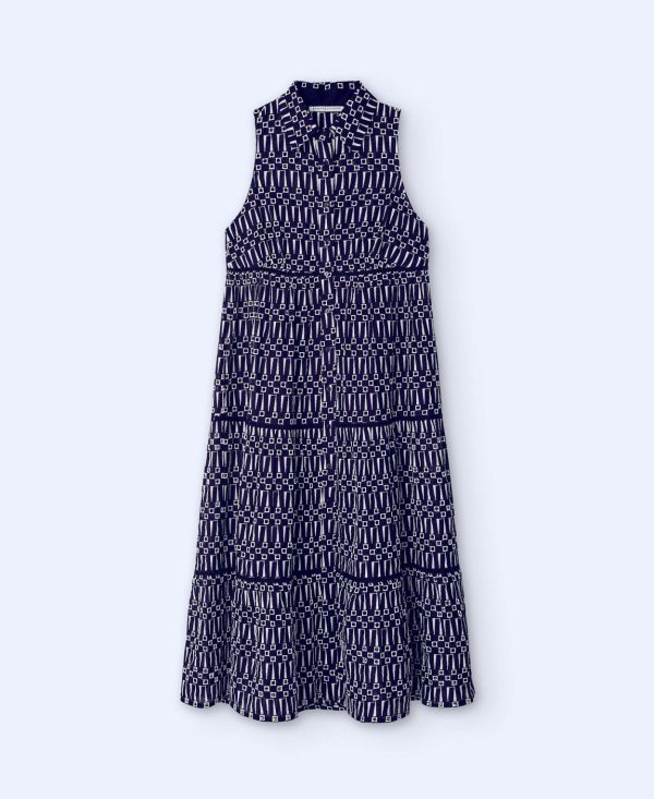 Adolfo Domínguez Vestidos Y Monos | Vestido Evasé Con Cuello Caja Azul Marino Mujer