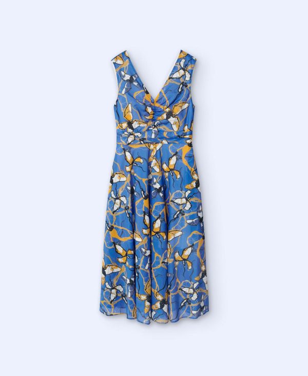 Adolfo Domínguez Vestidos Y Monos | Vestido Estampado En Crinkle Amarillo Estampado Mujer