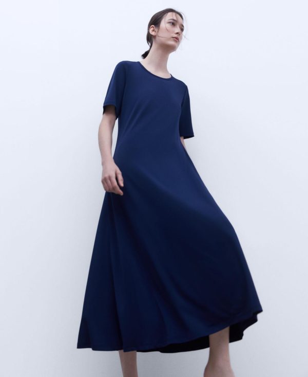 Adolfo Domínguez Vestidos Y Monos | Vestido Evasé Con Cuello Caja Azul Marino Mujer