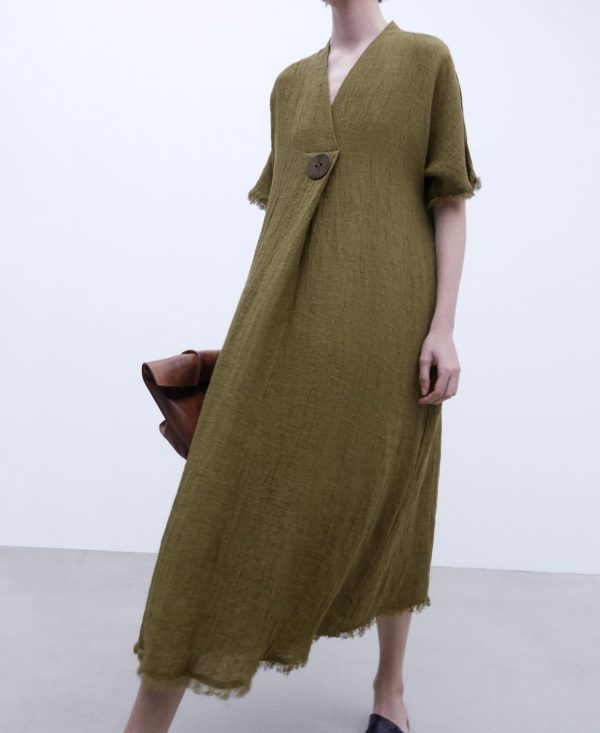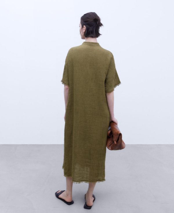 Adolfo Domínguez Vestidos Y Monos | Vestido Túnica En Ramio Y Lyocell Amarillo Mujer