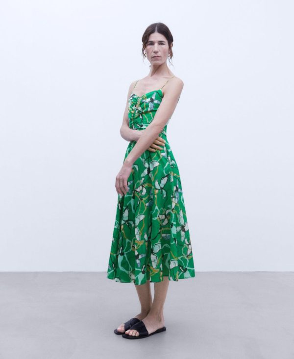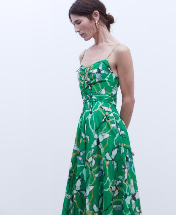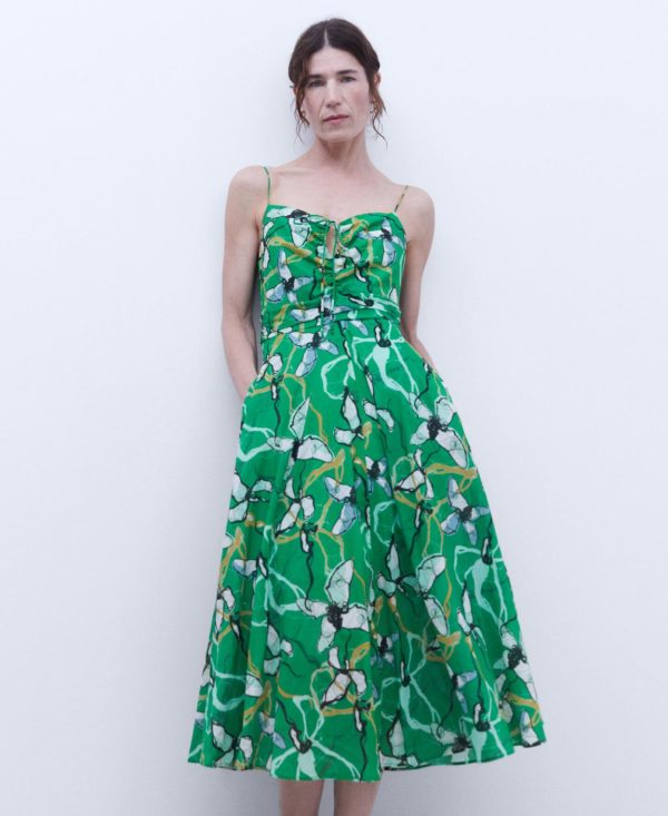 Adolfo Domínguez Vestidos Y Monos | Vestido Volumen En Algodón ético Marrón Estampado Mujer