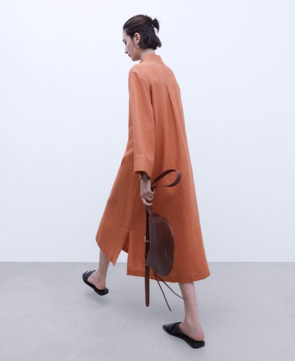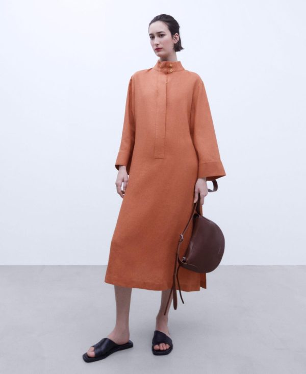 Adolfo Domínguez Vestidos Y Monos | Vestido Volumen En Algodón ético Marrón Estampado Mujer