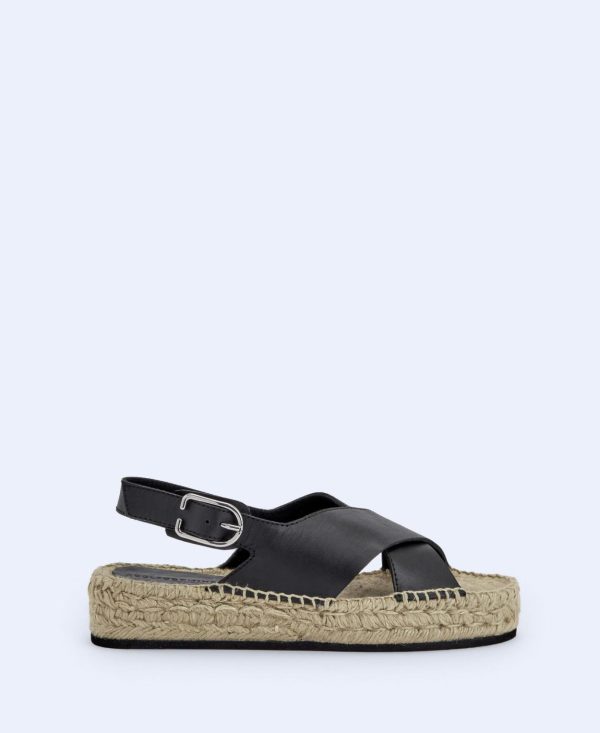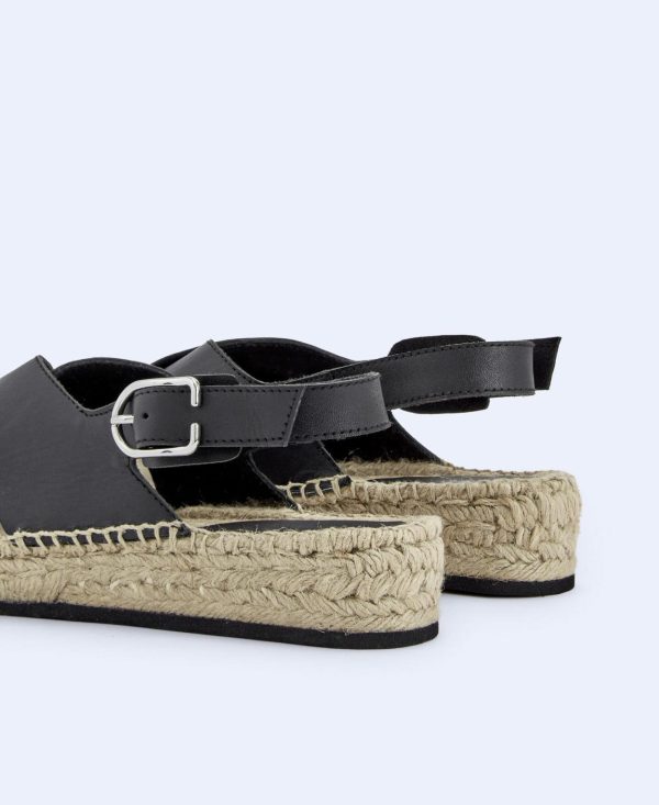 Alpargata con pala cruzada en yute y piel caprina. Ligera cuña trasera. Cierre hebilla metálica. Suela de EVA.