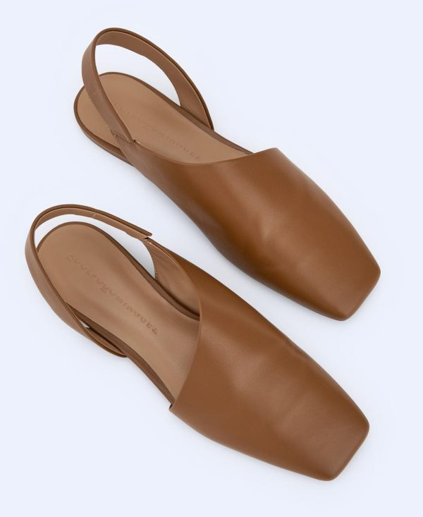 Babucha en piel bovina. Interior en piel caprina. Suela en caucho. Plantilla memory foam. Escote asimétrico. Cinta de tobillo. Puntera cuadrada. Logotipada.