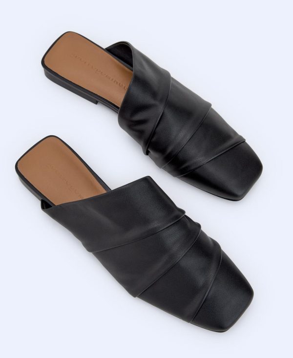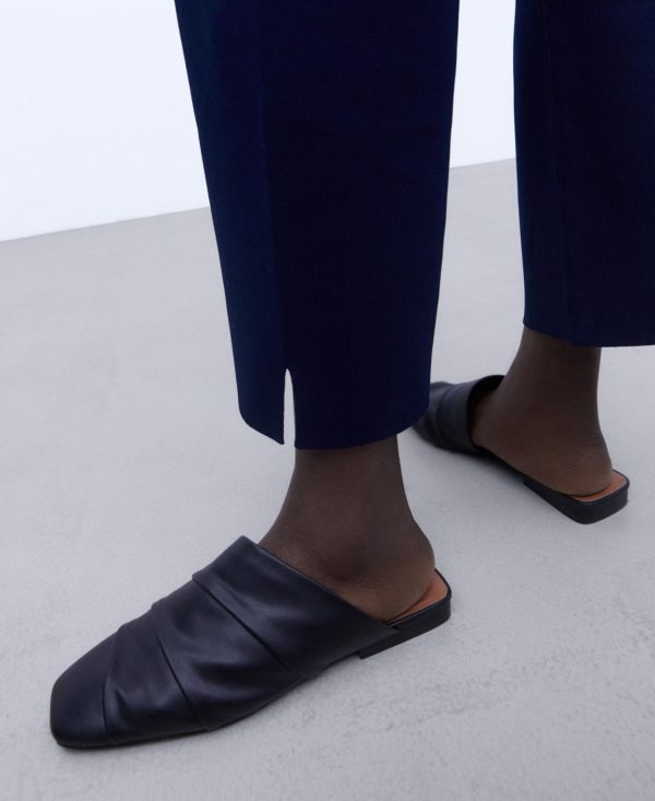 Babucha con tacón. Empeine drapeado. Talón abierto.